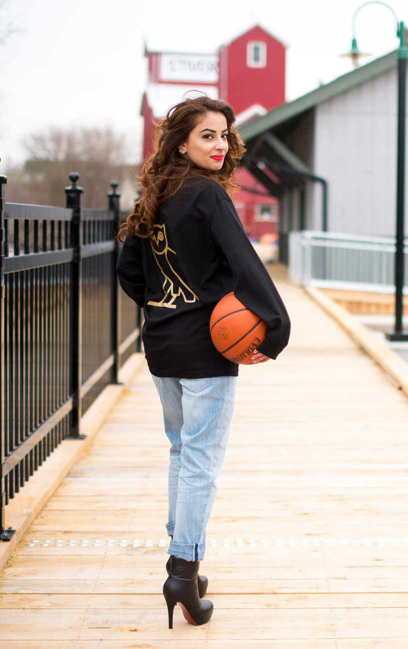 My look is very casual – obviously. Perfect for a sporting event. Clearly I’m finding it tough to let go of my boyfriend jeans but they’re just so comfortable! I added a touch of femininity to the get up by wearing some heels but again – I would’ve totally preferred flats. I’m wearing my Bvlgari ring and Chanel earrings to remind the world that hey – I’m still pretty girly!