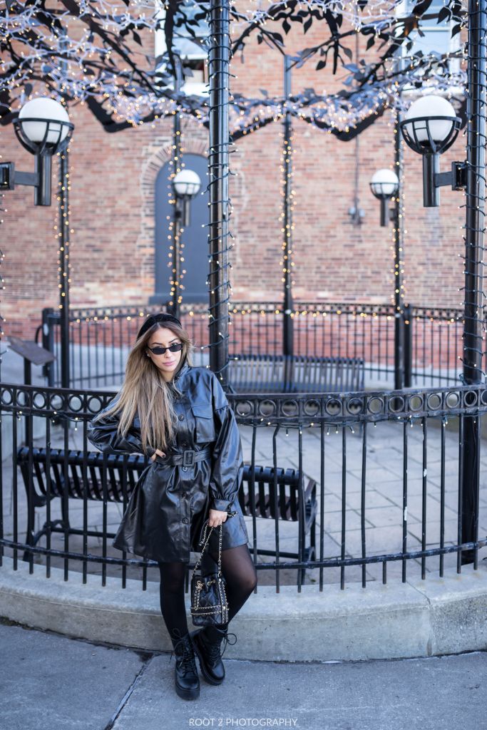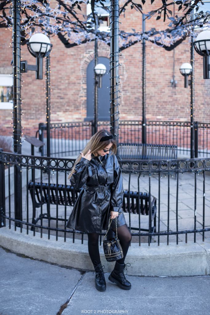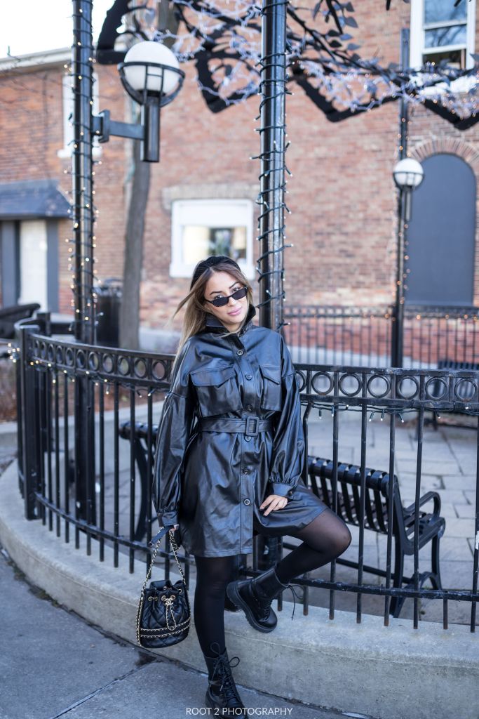 A black leather shirt has been a signature for the 2020 winter season. It’s so versatile and there are so many ways you can style it! I chose to pair it with leggings and some combat boots. I wanted a really edgy look yet feminine look. Did I mention that the glasses gives it total Matrix vibes? Let me know what you think!