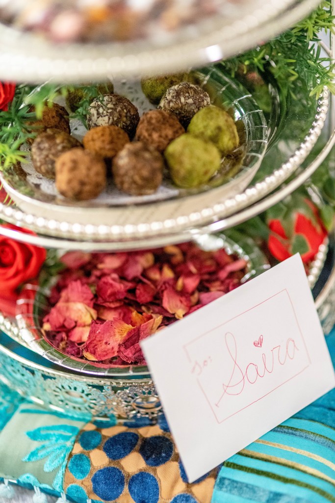 To ingest, some goodies (matcha, lavender-coconut, cocoa and cinnamon-covered energy balls) for you to enjoy while sipping on your flight/choice of 3 different beverages (lavender tulsi tea, pulp ginger tea and/or a cleansing blooming flower tea)