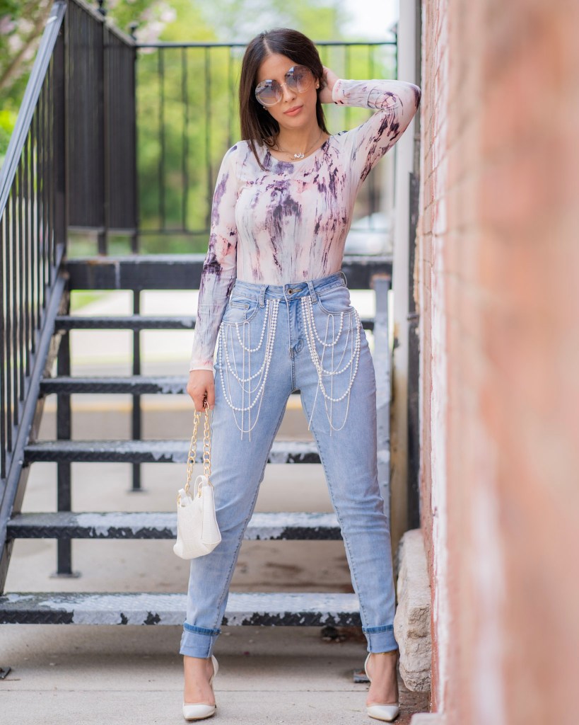 My bodysuit collection is growing! Rapidly too! I am obsessed. They are so easy to dress up or down and I can’t see myself getting over them tbh. I love a casual bodysuit and jeans combo and here are these incredible jeans from Shein that I am overtly in love with. The pearl and jewel details really make them stand out and can be styled in so many different ways!