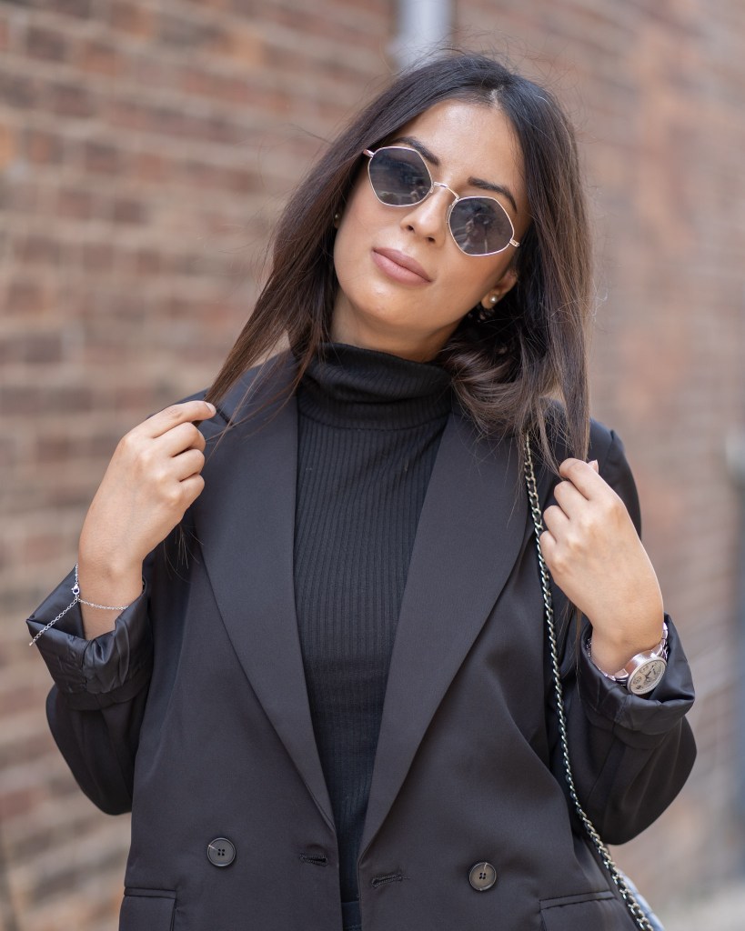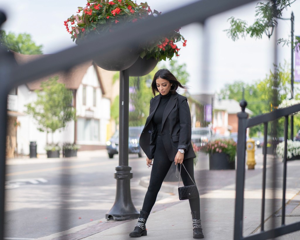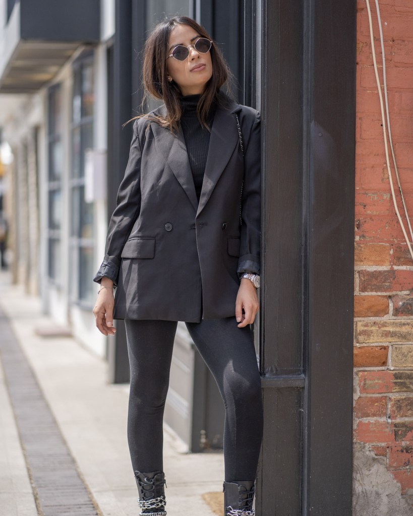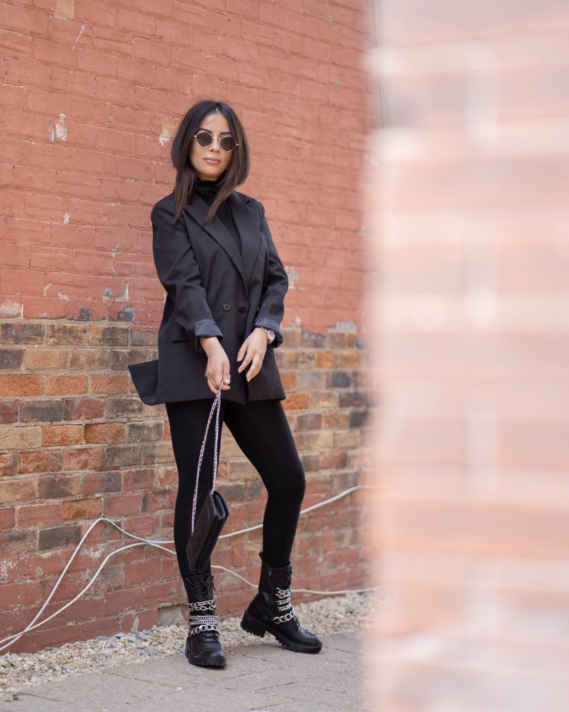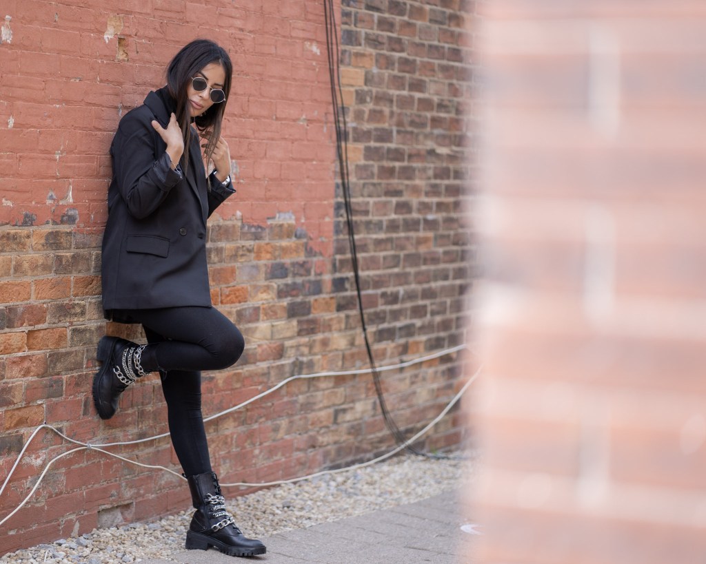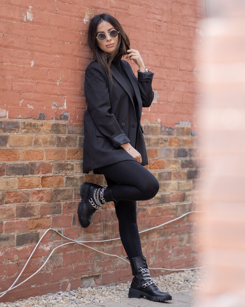 You can never go wrong with all black. It’s timeless, easy and not to mention slimming! I got these accent boots from Zara and I am beyond happy with the buy. They’re heavy and can do some damage, but I’ll just keep them on my feet. The chains are great quality and I can see myself in these boots for a few years down the road. Black and silver will always be a favourite pairing of mine and throw on a oversized blazer – your look is complete!