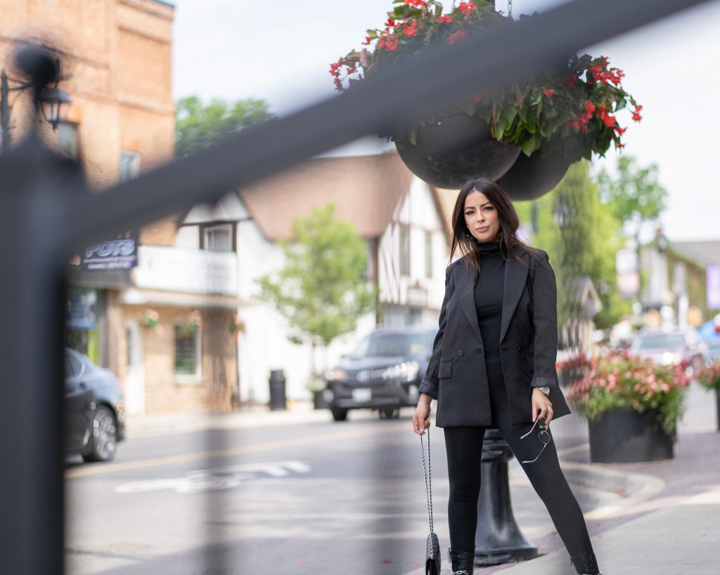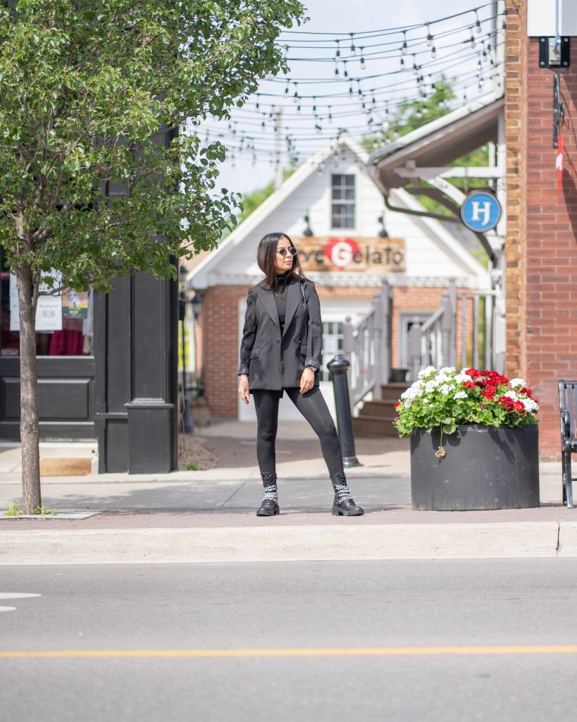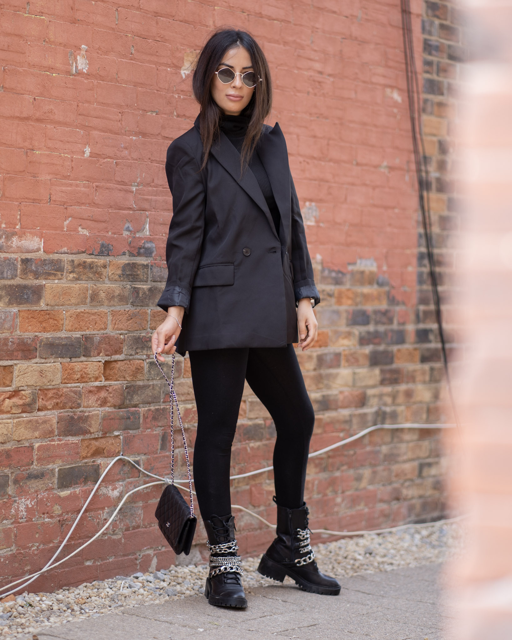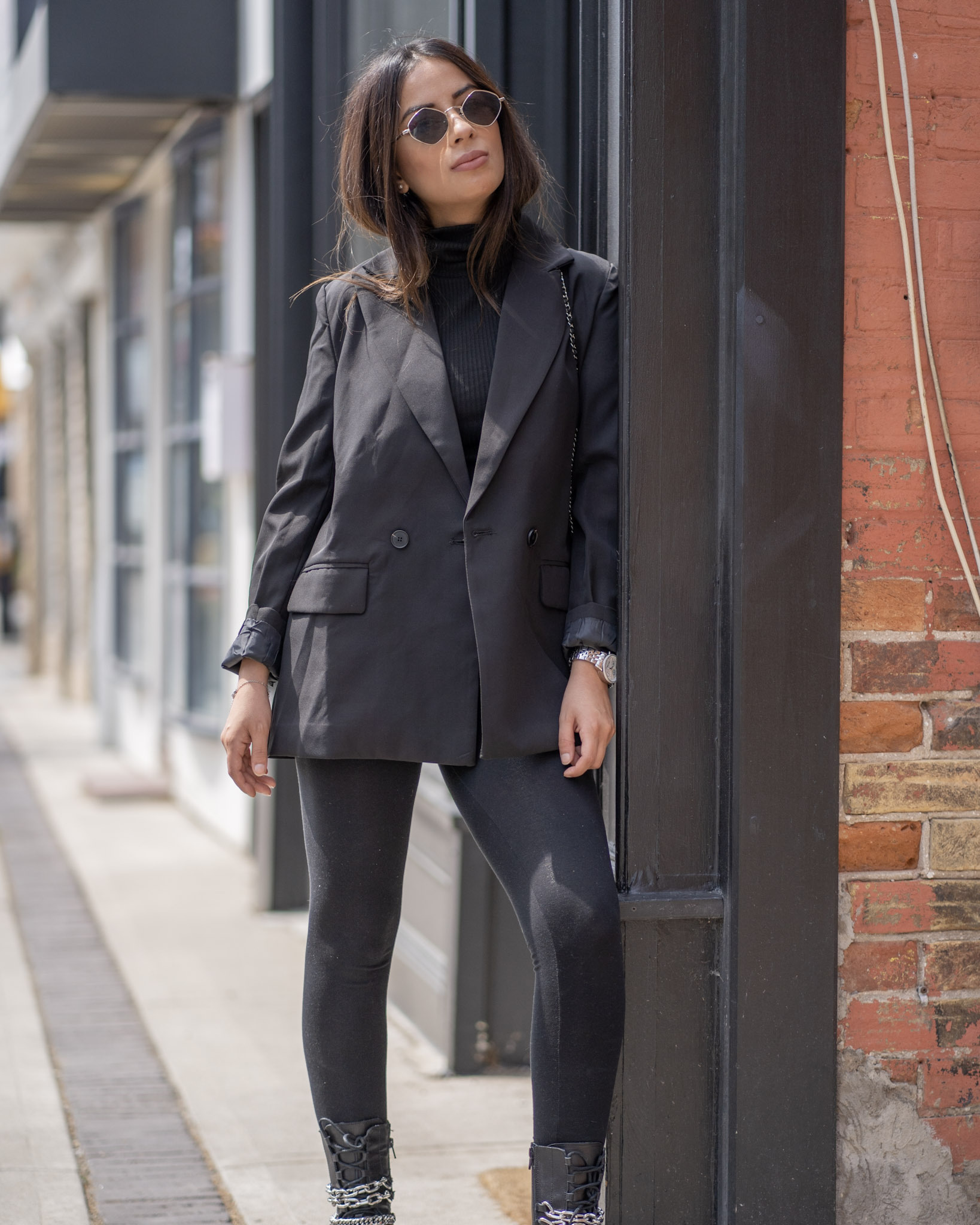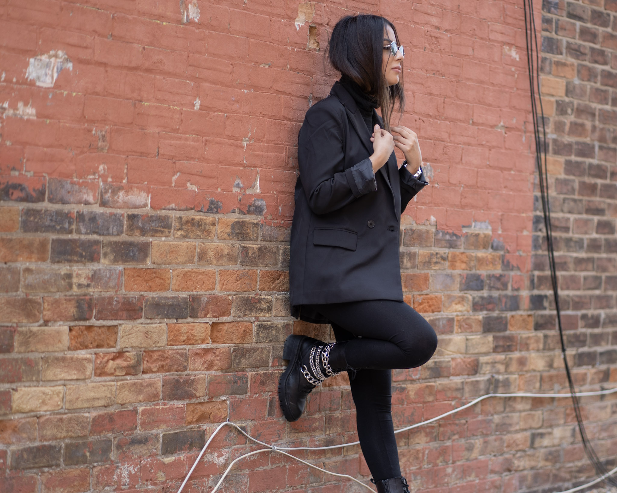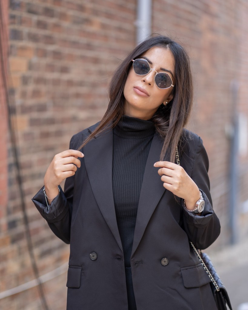 You can never go wrong with all black. It’s timeless, easy and not to mention slimming! I got these accent boots from Zara and I am beyond happy with the buy. They’re heavy and can do some damage, but I’ll just keep them on my feet. The chains are great quality and I can see myself in these boots for a few years down the road. Black and silver will always be a favourite pairing of mine and throw on a oversized blazer – your look is complete!