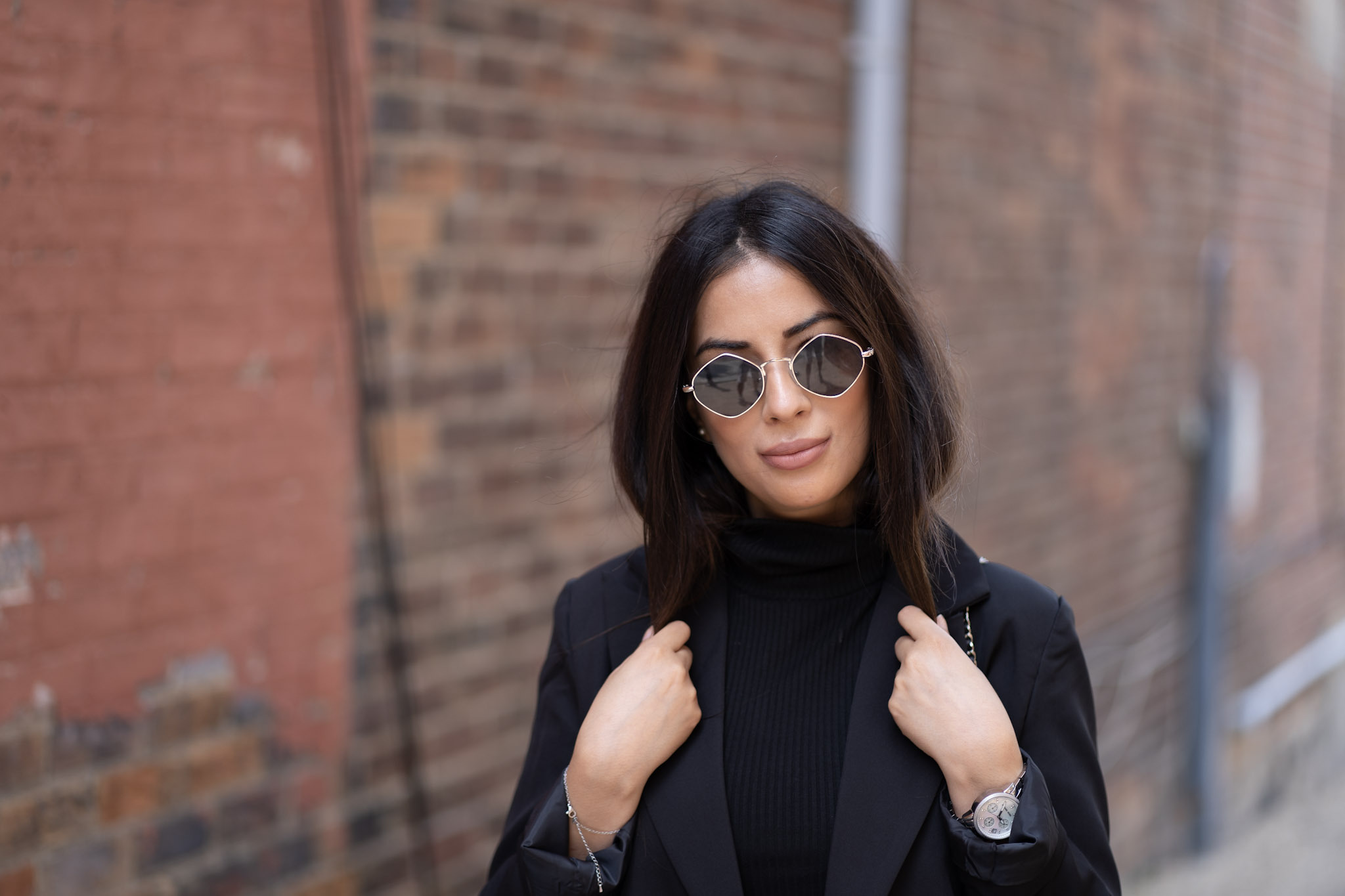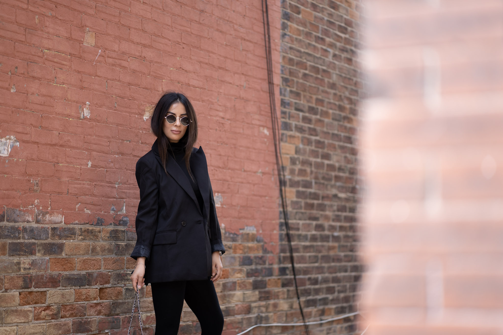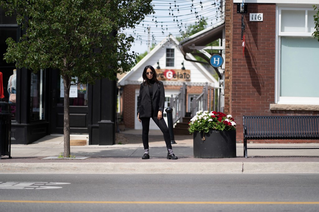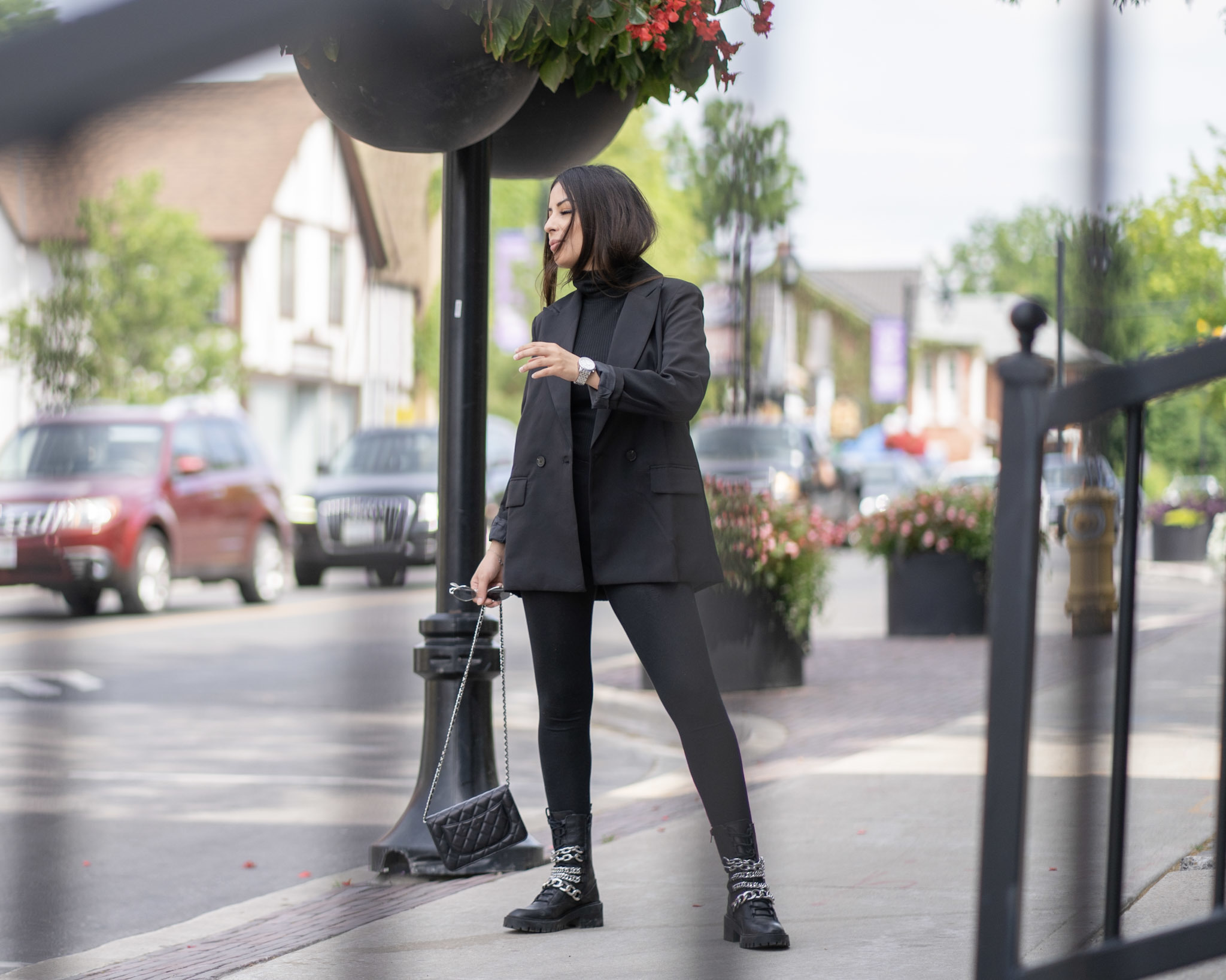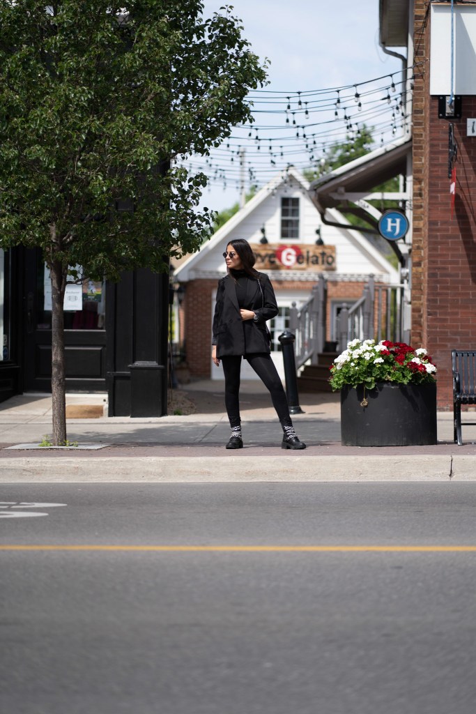 You can never go wrong with all black. It’s timeless, easy and not to mention slimming! I got these accent boots from Zara and I am beyond happy with the buy. They’re heavy and can do some damage, but I’ll just keep them on my feet. The chains are great quality and I can see myself in these boots for a few years down the road. Black and silver will always be a favourite pairing of mine and throw on a oversized blazer – your look is complete!