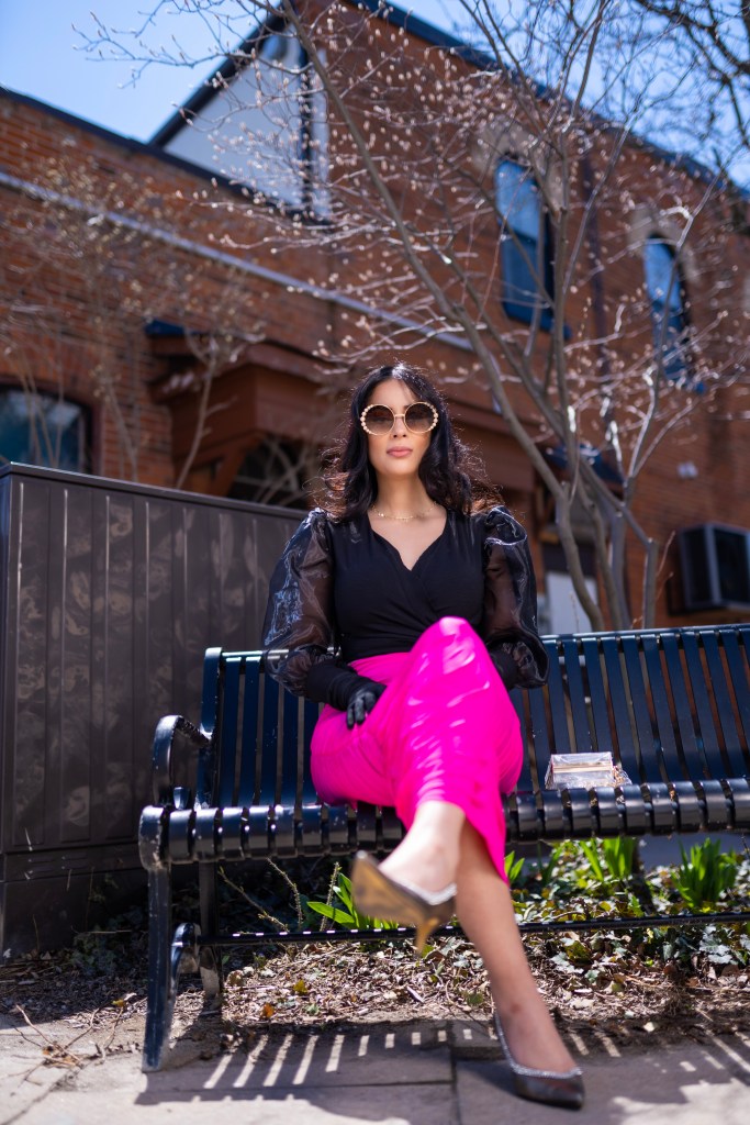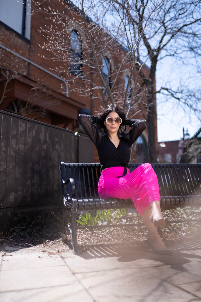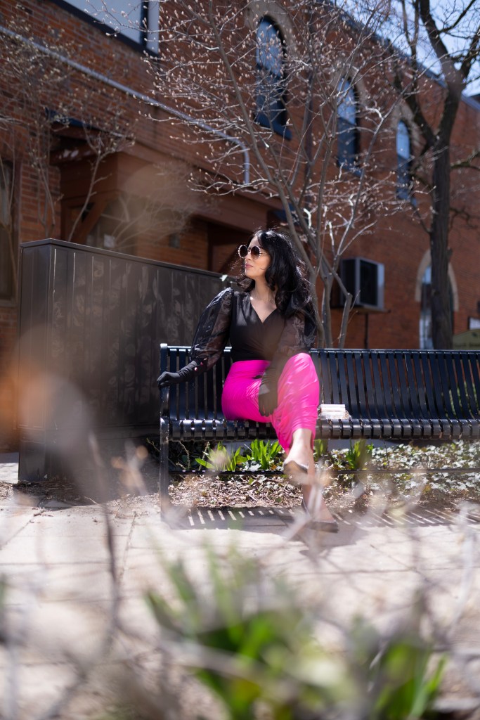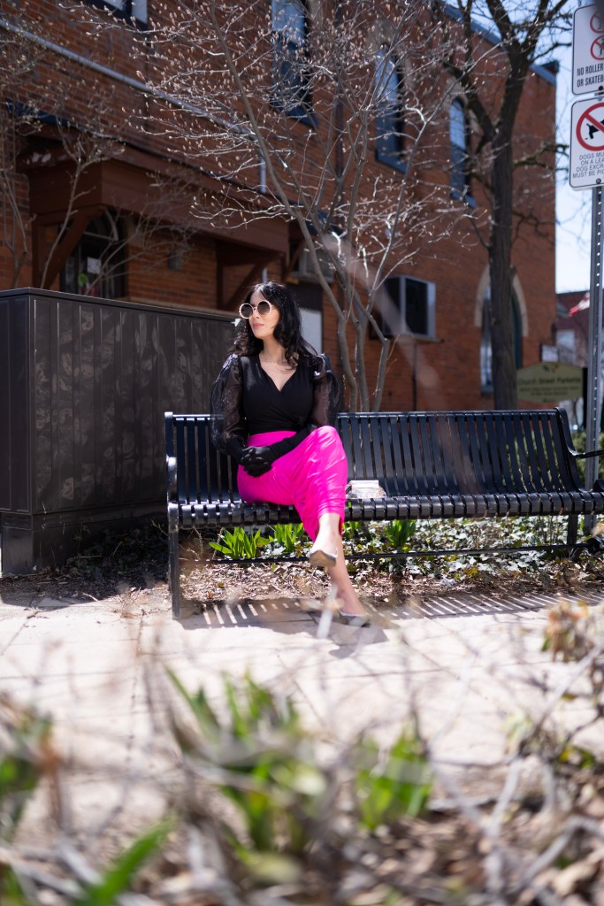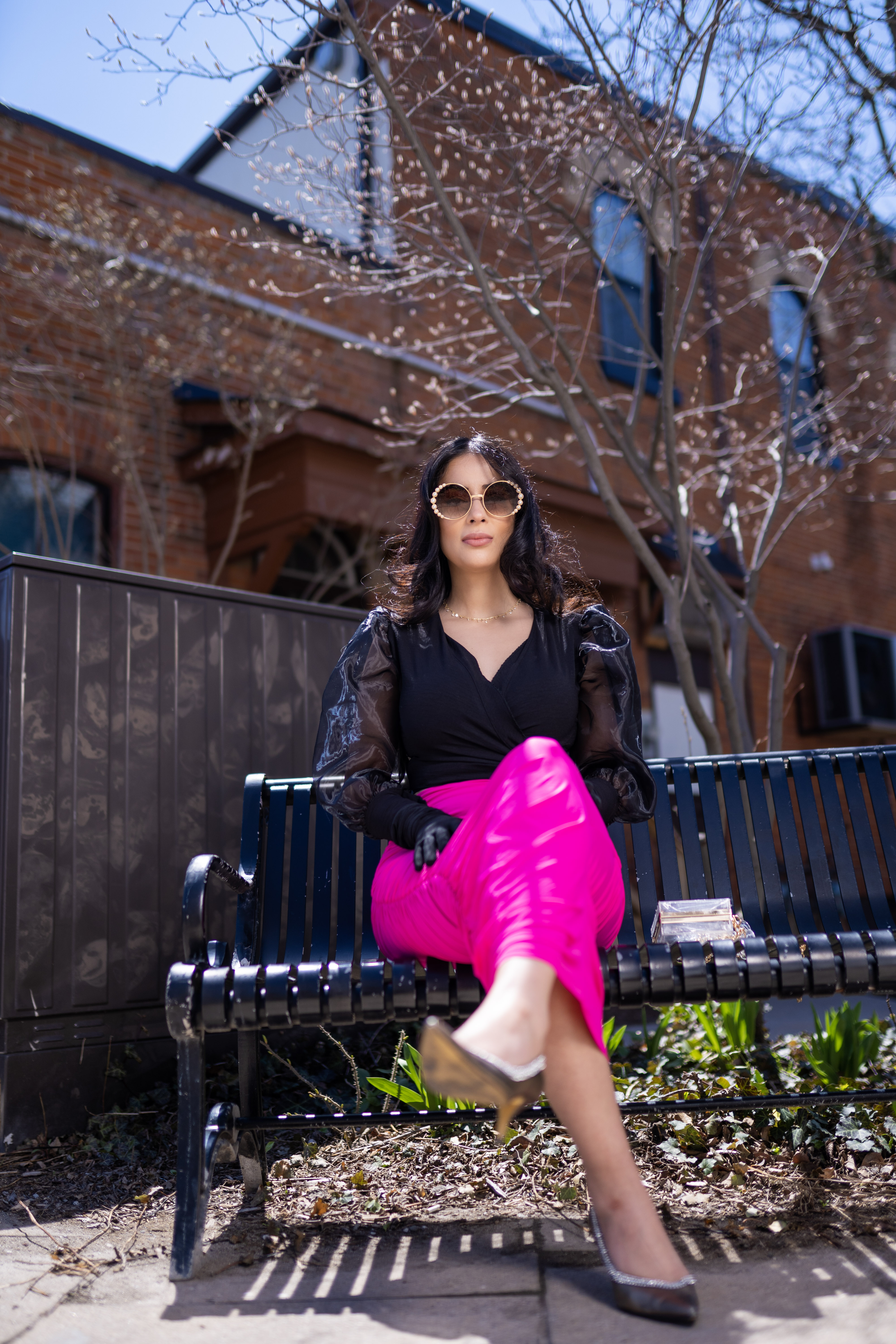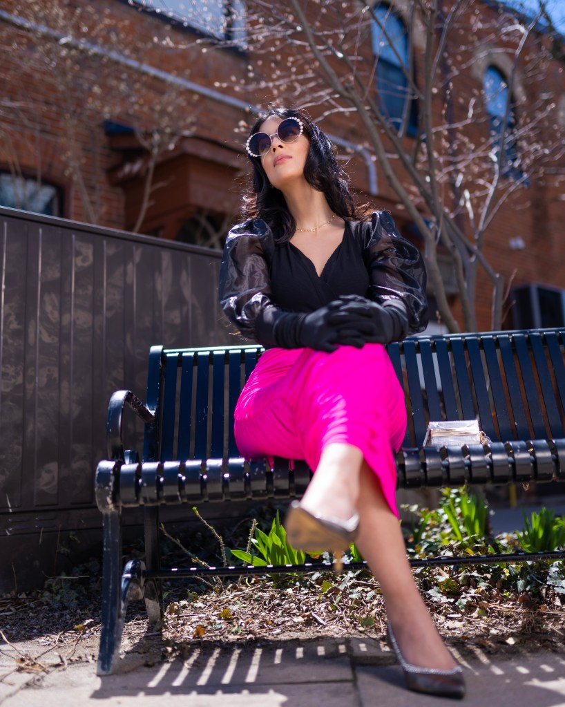 It’s not a secret how obsessed I am with hot pink. It has to be my colour of the Summer. I always love a good midi skirt and add in the perfect tint – I will be there! I paired my fit with gloves because I’ve seen it on everyone and I wanted to jump on the trend. Pointy toes and oversized sunglasses adds the best feminie touch to the look.